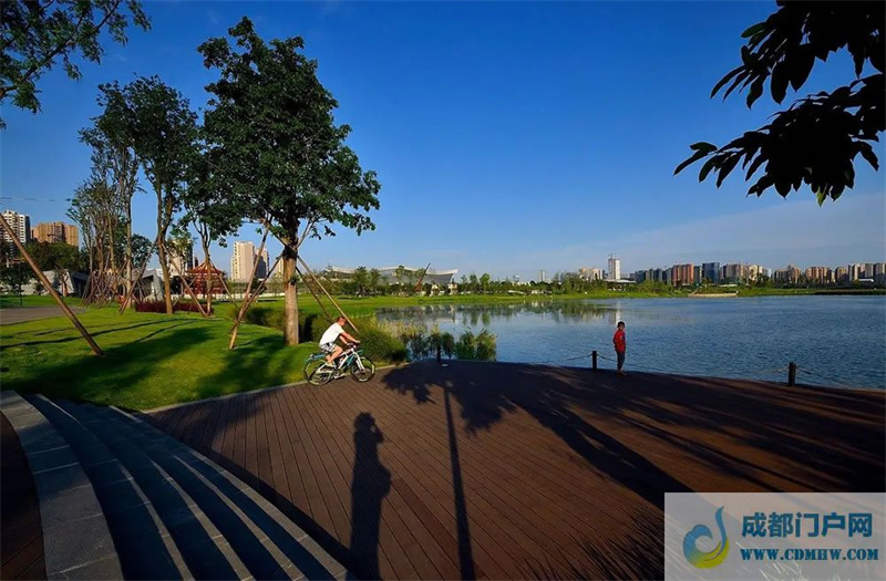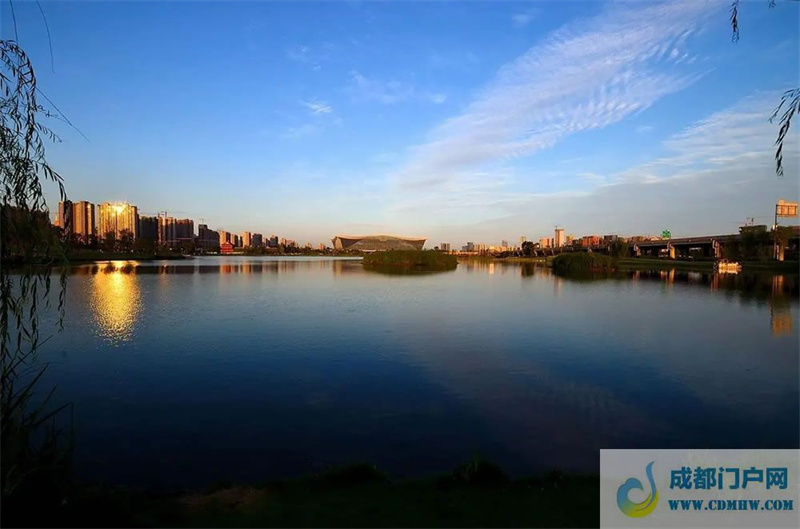 锦城湖位于成都市四环路南段,西起成昆铁路、东至站华路,在锦城公园基础上扩建而成,总用地面积158.7万平方米,湖区总水面66.9万平方米,以剑南大道和外环路十字分割,划为四个湖区水面。湖区按“疏林草坡——悦动水岸”主题设计,包含停车场、防灾避险场所、管理用房、绿道及驿站等公共服务设施。