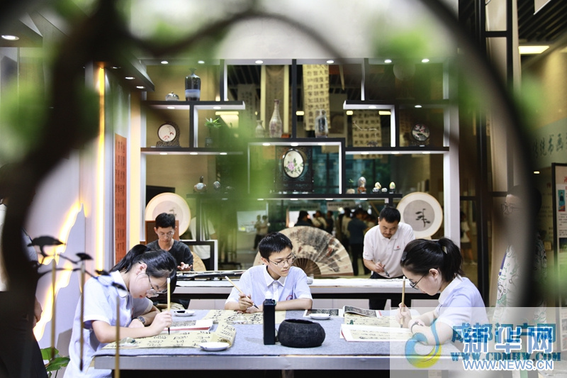 当日,由四川省委宣传部、四川省教育厅、四川省文旅厅、共青团四川省委、四川省文联、四川省少工委主办的传习工坊展暨书画集市同步在内江国际会展中心举行。(文/图 张可凡)