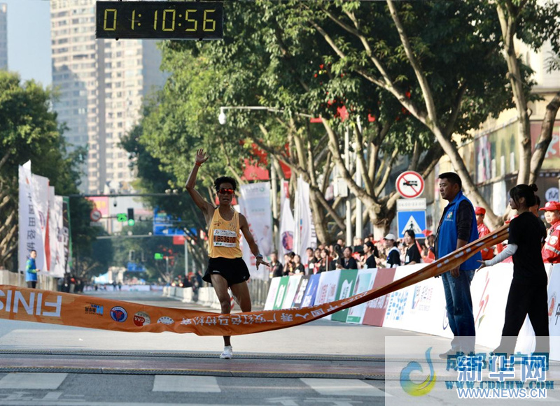 四川选手伍二清夺得男子半程冠军 新华网发(张可凡摄)
