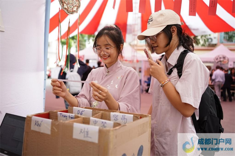 2023年11月1日,在越南河内大学,越南大学生在“同唱一首歌”中国—东盟青年影视歌会活动现场参与猜谜语游戏。(新华社记者胡佳丽摄)