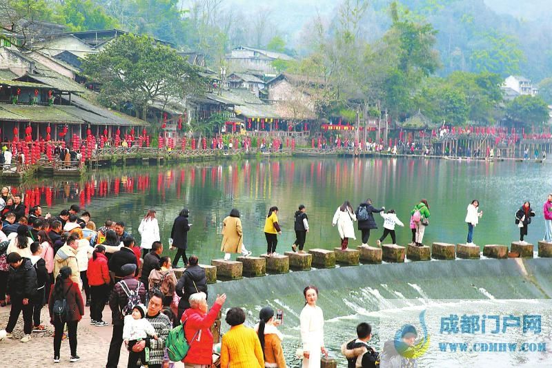 2月14日,游客在眉山市洪雅县柳江古镇景区游玩。姚永亮 摄