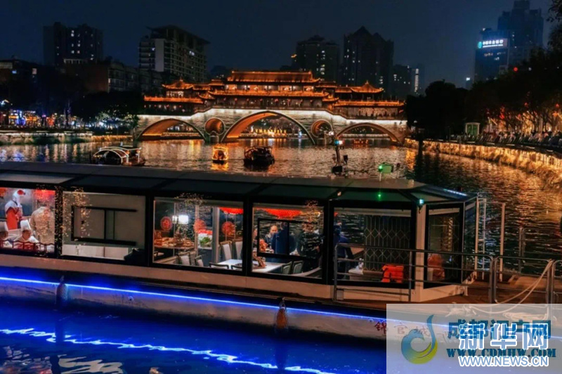 “热辣滚烫”,是春节期间线下消费火热的最好注脚。成都44家重点商贸零售企业春节假期实现商品销售14.1亿元,同比增长7.8%,较2019年同期增长29.3%。成都IFS客流同比上涨超50%,国际一线品牌、餐饮等业态表现亮眼。2月8日至14日,成都晶融汇购物中心销售额同比增长55%,客流同比增长60%。美团数据显示,春节假期成都日均消费规模同比增长35%,较2019年春节增长150%,消费规模居全国第四。成都异地游客堂食订单量位居全国第二,同比去年增长超210%。一个个有增长、有活力的消费数据,一幕幕烟火气、高人气的消费场景,折射出蓬勃兴旺的市场活力。(图片由成都市文化广电旅游局提供)