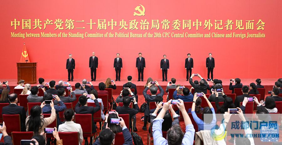 新华社北京10月23日电 刚刚在中国共产党第二十届中央委员会第一次全体会议上当选的中共中央总书记习近平和中共中央政治局常委李强、赵乐际、王沪宁、蔡奇、丁薛祥、李希,23日中午在人民大会堂同采访中共二十大的中外记者亲切见面。