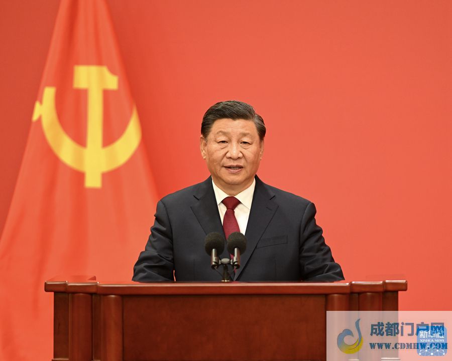 10月23日,刚刚在中国共产党第二十届中央委员会第一次全体会议上当选的中共中央总书记习近平和中共中央政治局常委李强、赵乐际、王沪宁、蔡奇、丁薛祥、李希在北京人民大会堂同中外记者亲切见面。这是习近平发表重要讲话。 新华社记者 李学仁 摄