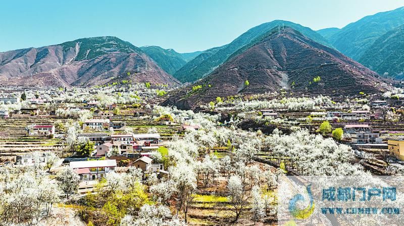 3月24日,阿坝州金川县的梨花次第开放。从高处俯瞰,绵延数十公里的金川河谷呈现出“千树万树梨花开”的壮观景象。