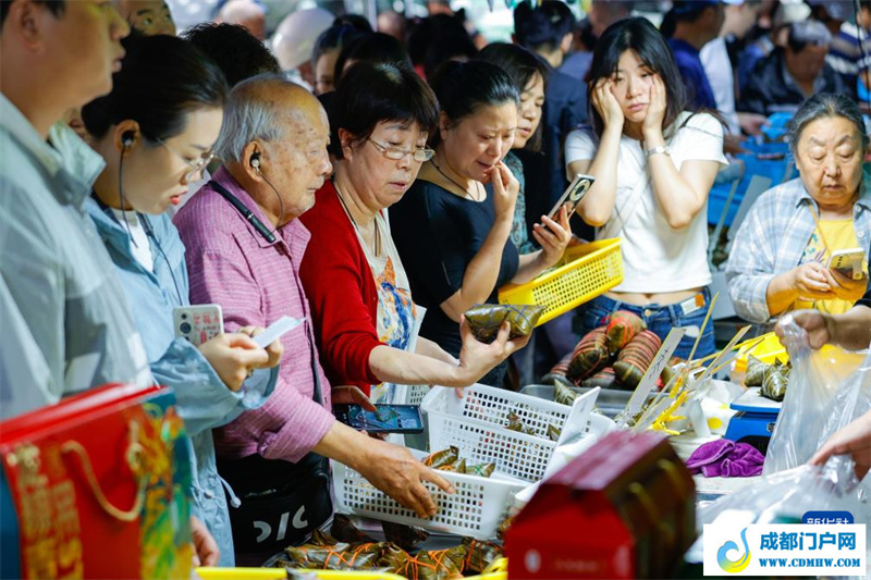 6月7日,在四川省成都市的“粽子一条街”上,人们在选购粽子。新华社记者 沈伯韩 摄