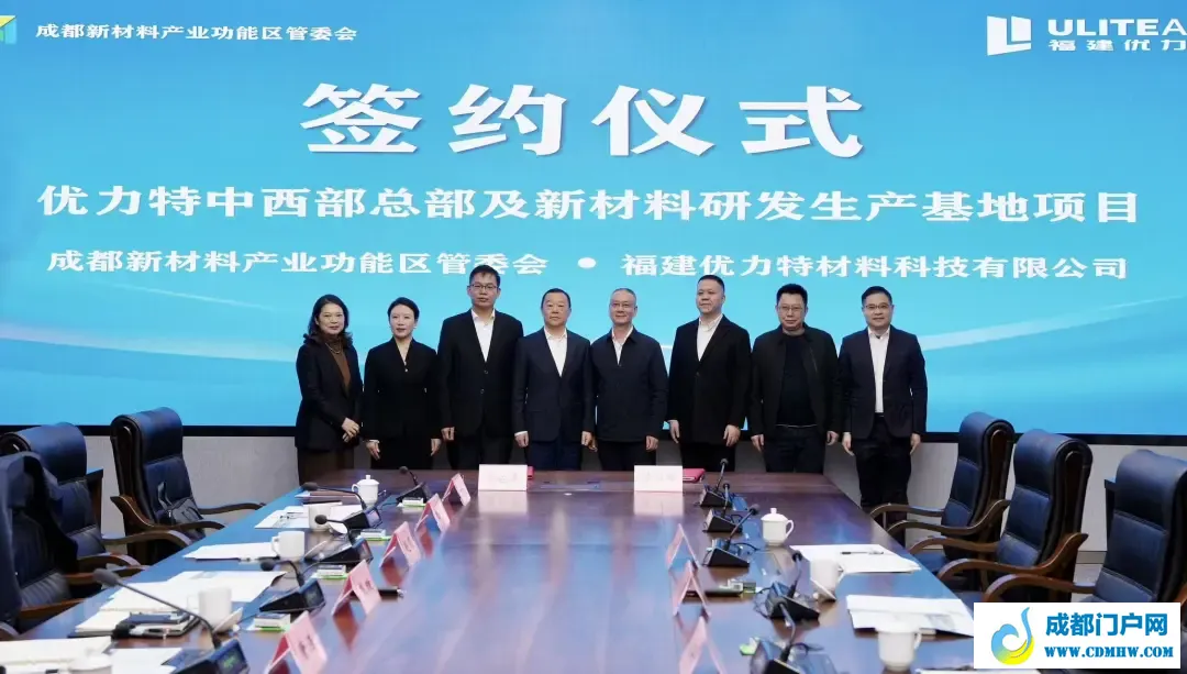 11月18日,成都新材料产业功能区管委会与福建优力特材料科技有限公司签署合作协议,优力特中西部总部及新材料研发生产基地项目正式落户彭州。福建优力特材料科技有限公司董事长吴小强,彭州市委书记、成都新材料产业功能区党工委书记廖暾出席签约仪式。