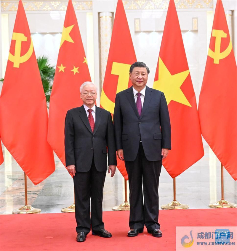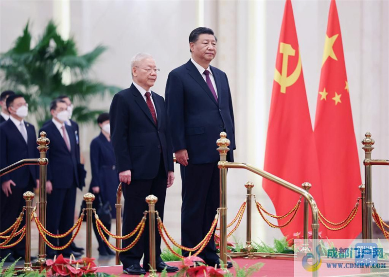 习近平热烈欢迎阮富仲在中共二十大召开后即对中国进行正式访问。习近平表示,近年来,我同阮富仲总书记同志通过多种方式保持密切沟通,就引领中越关系发展达成许多重要共识,这些共识得到全面落实,取得显著成效。