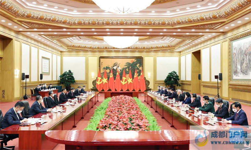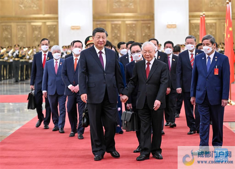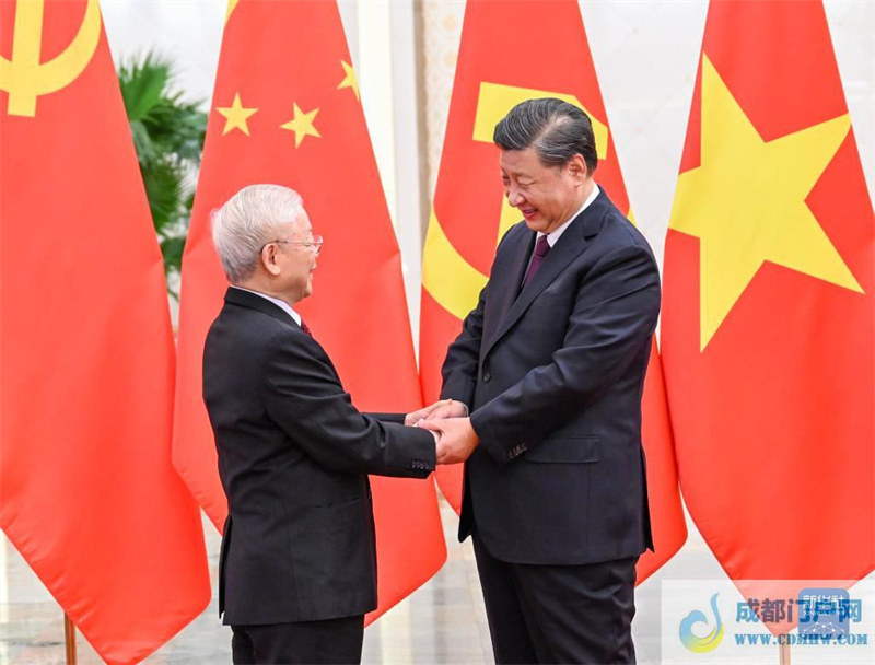 阮富仲表示,非常感谢习近平总书记邀请我率领越方领导人作为中共二十大后第一个元首级代表团访华,我也实现了向习近平总书记同志作出的将中国作为我连任越共中央总书记后首访国家的承诺。我代表越南党、政府和人民就中共二十大成功举行向中国党、政府和人民表示热烈祝贺,对习近平总书记同志再次当选中共中央总书记表示热烈祝贺,这充分体现了中国党和人民对过去十年在以习近平同志为核心的党中央坚强领导下,在习近平新时代中国特色社会主义思想的指引下,中国取得的巨大发展成就和崇高国际威望的高度认可和信赖。中国共产党取得的成就为世界发展中国家特别是走社会主义道路的国家提供了宝贵经验。我们坚信,在以习近平同志为核心的中共中央领导下,中国一定会实现中共二十大确定的目标任务,为地区和世界作出新的积极贡献。