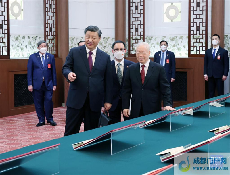 会谈后,习近平和阮富仲共同见证了双方签署的政党、经贸、环保、文旅、司法、海关、地方等领域合作文件。