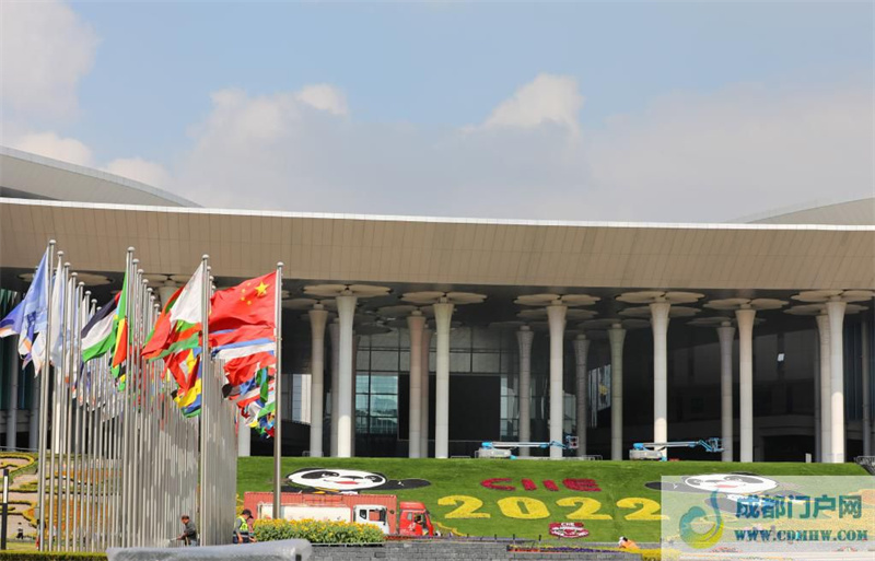 这是国家会展中心(上海)北入口外的进博主题装饰(10月15日摄)。(新华社记者方喆摄)