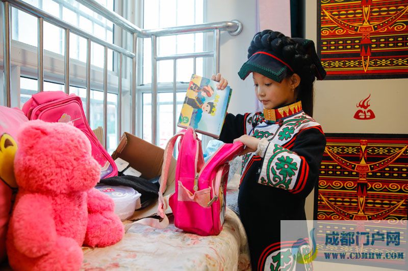 10月28日,在四川省凉山州越西县越城镇城北感恩社区,易地扶贫搬迁到此的彝族女孩王小花放学回家后整理书包。学校就在家附近,王小花上学很方便。