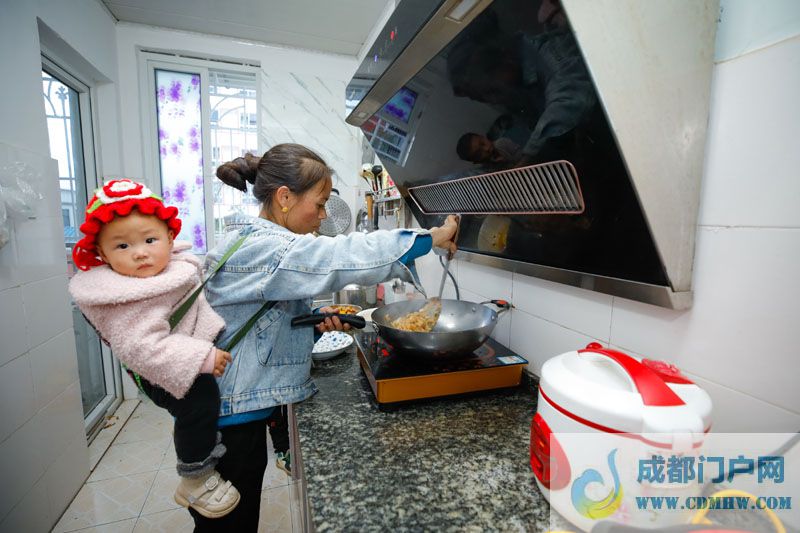 10月28日,在四川省凉山州越西县越城镇城北感恩社区,易地扶贫搬迁到此的沙马石各在配备了现代化炊具的厨房里准备晚餐。搬进楼房的沙马石各再不用在传统的火塘边做饭,生活条件有了很大改善。