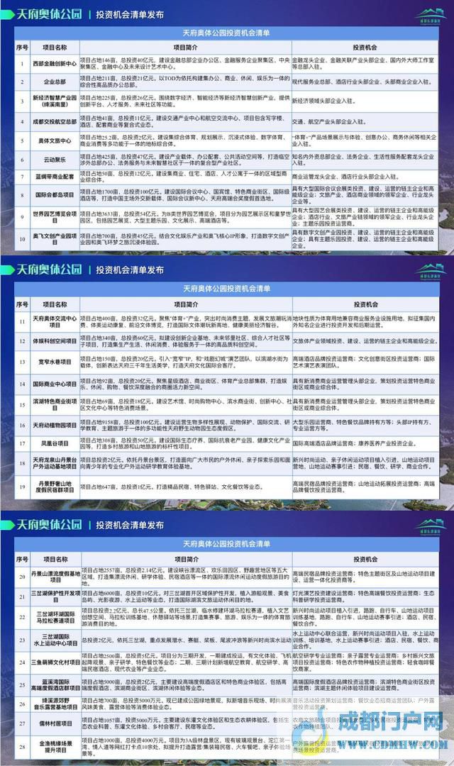 28个天府奥体公园项目投资机会清单解锁