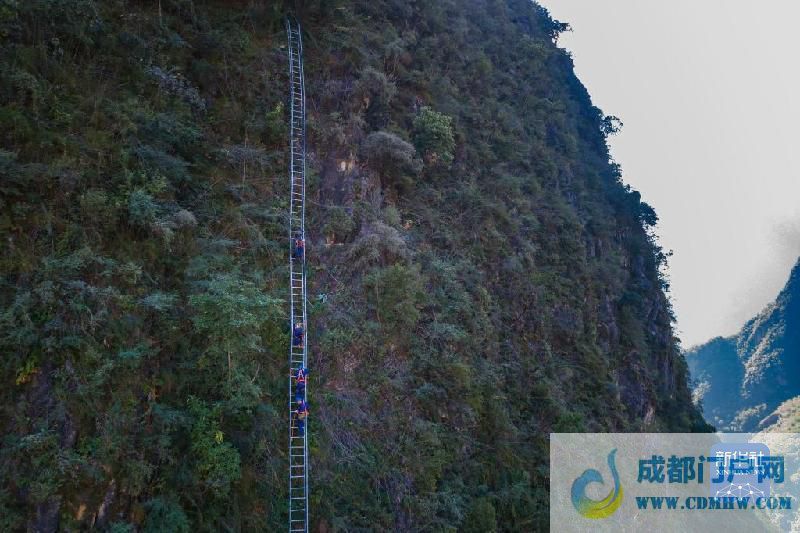 魏凯林和同事攀登通往79号塔的天梯。新华社发 廖望 摄