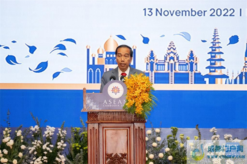 11月13日,印度尼西亚总统佐科在柬埔寨首都金边举行的闭幕式上致辞。新华社记者朱炜摄